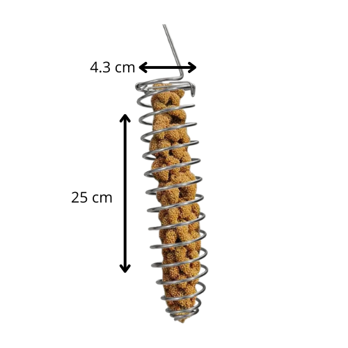 Offrez à vos oiseaux une façon ludique et hygiénique de se nourrir grâce à cette mangeoire en spirale conçue pour accueillir des branches de millet, fruits secs ou autres friandises.